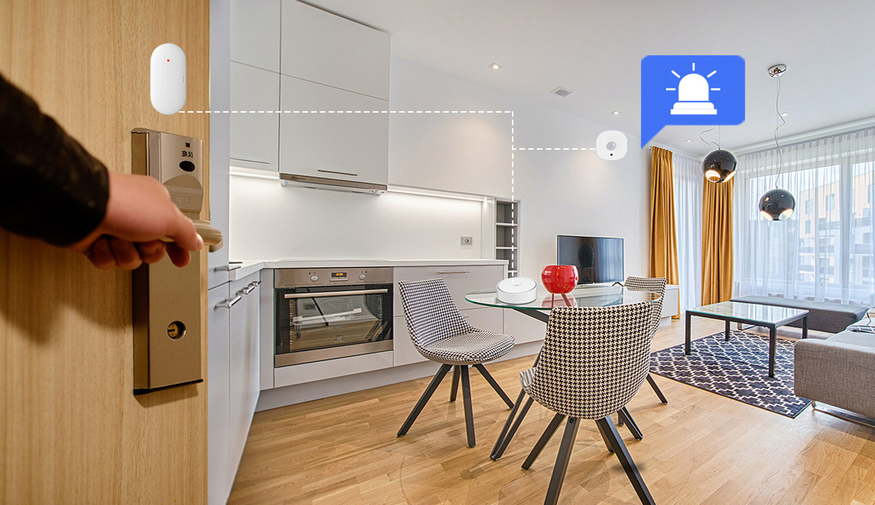With security mode enabled, the gateway will send live alerts of unusual activities. For example, the gateway will send alerts if contact sensors detect an open action and passive IR (PIR) sensors detect movements. Flexibly arm and disarm your home security system.