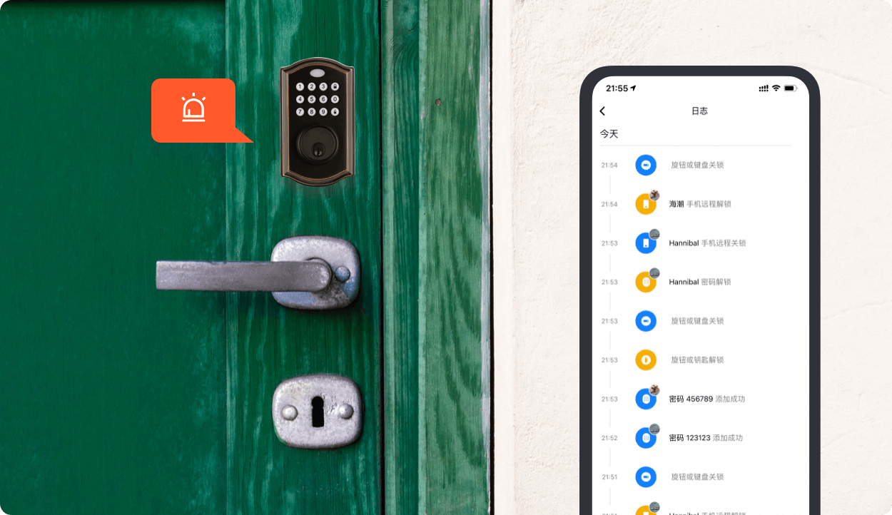 智能锁可以成为你的管家,告知你家门口发生的一切动静,包括实时的开门记录、关门记录、家中老人孩子回家提醒等