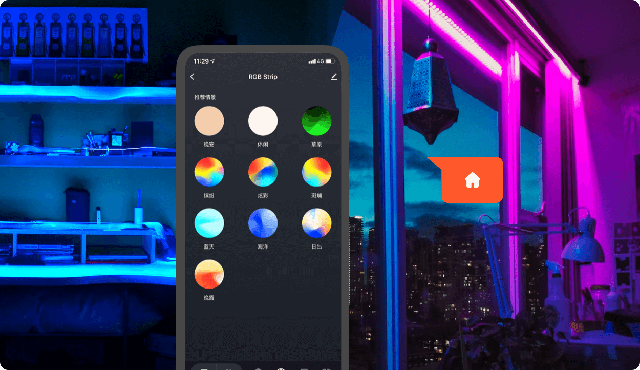 可调节不同亮度的彩光颜色,创造温馨舒适的氛围空间